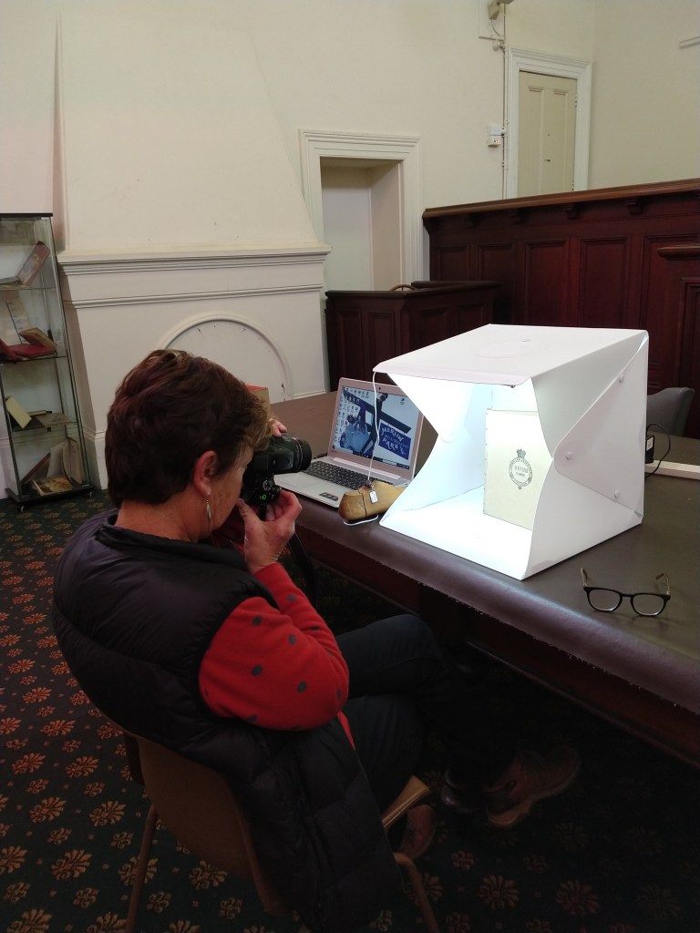 We are continuing to digitise our collection. Here Rose is taking photographs of one of our books using a light box. The pictures and a detailed description will be posted to the Victorian Collections website. Victorian Collections already contains the online listings of many other Historical Societies.