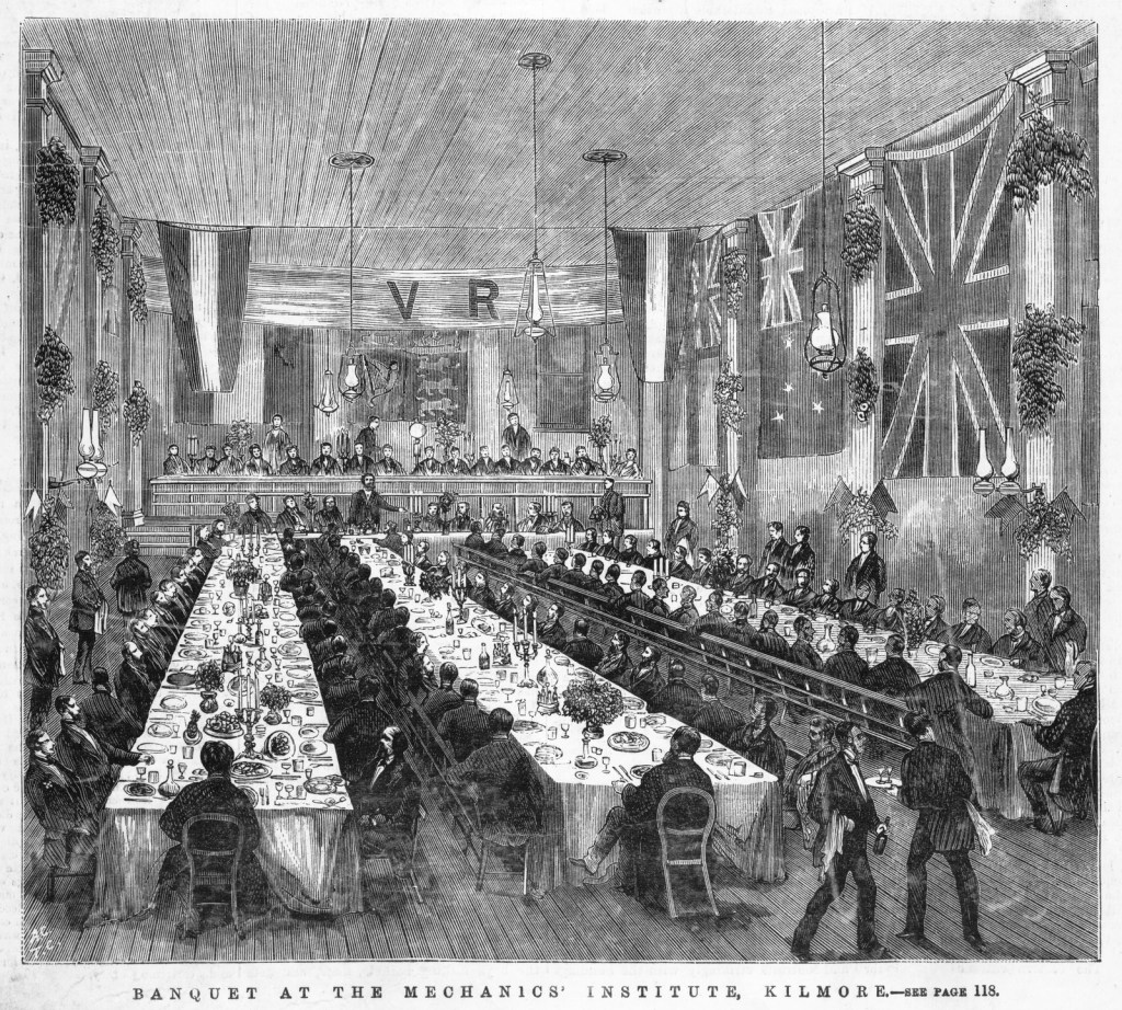 The building had seen many public gatherings over the years, including this well known image of a banquet held in 1872 for the inauguration of the railway. The VR in the image apparently stands for Victorian Railways, not ‘Victoria Regina’ as originally assumed.