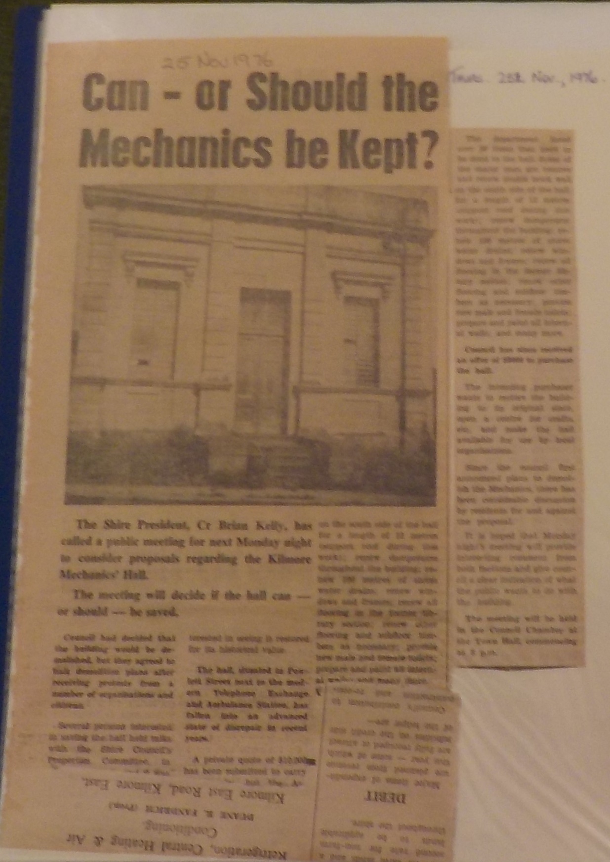 We currently have a small display of material relating to the Mechanics Institute in the foyer of the Old Post Office.